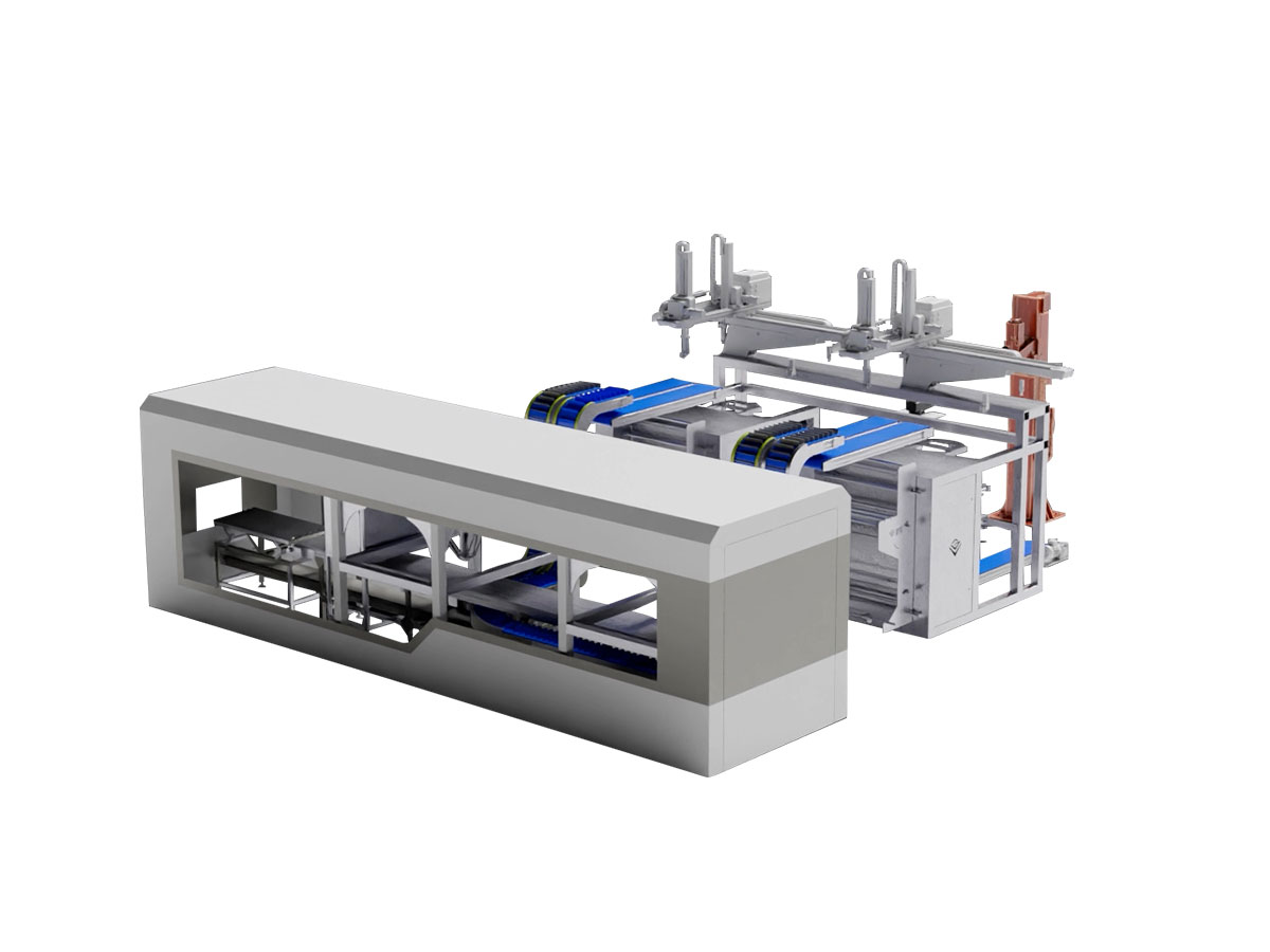 • Poşetlenen ürünleri otomatik olarak plastik veya karton kasalara yerleştirir.